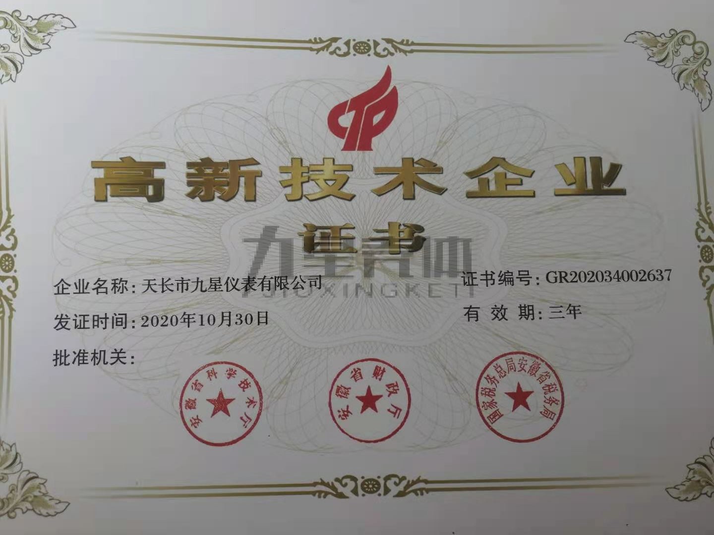 高新技術(shù)企業(yè)證書